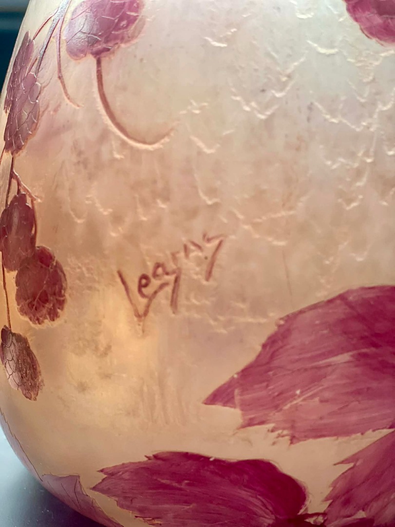 Materiaal: zuur-geëtst glas met handbeschilderd emaille Signatuur: Legras
