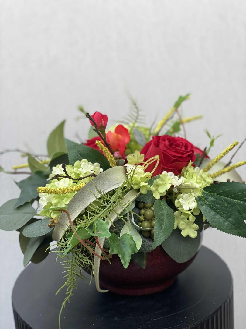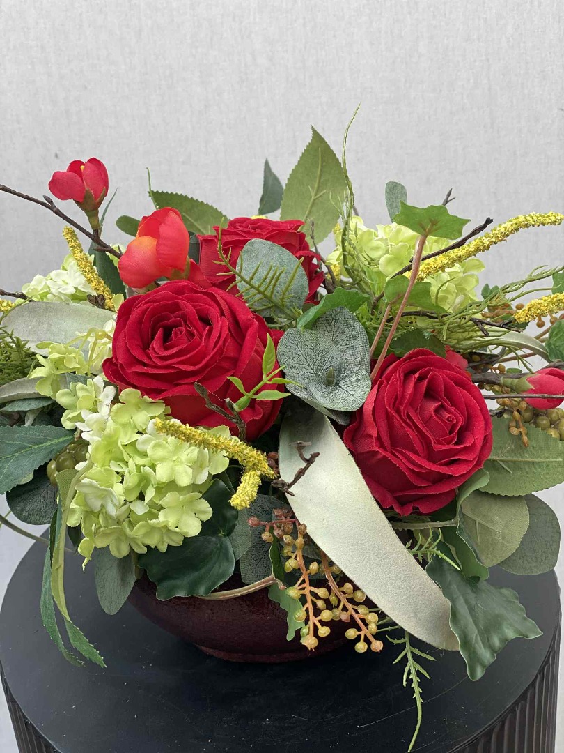 Bloemstuk, Zijden Rozen En Viburnum Nr 107