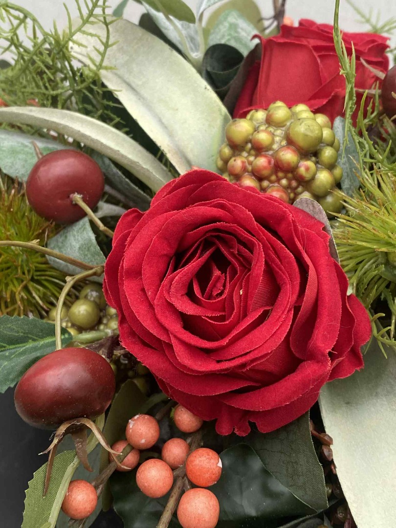Dit fraaie Bloemstuk is volledig van zijde bloemen gemaakt. Onze bloemstukken worden in eigen atelier gemaakt. Iedere bloemstuk is handwerk.