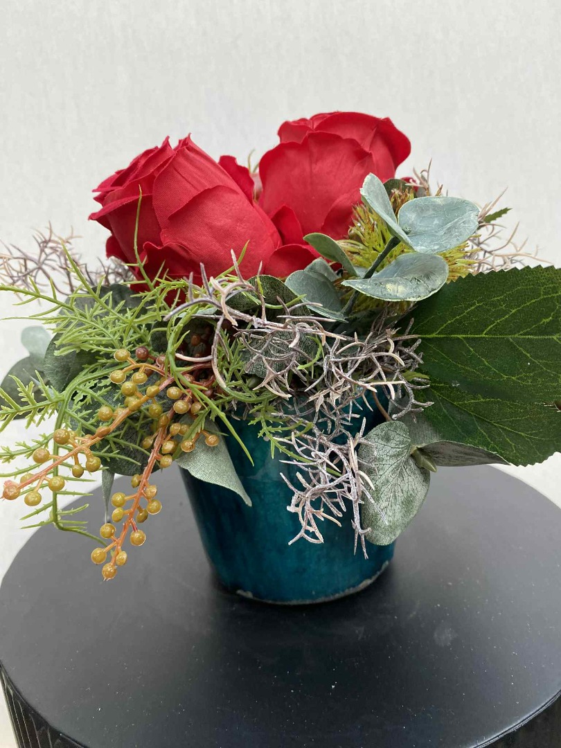 Dit fraaie Bloemstuk is volledig van zijde bloemen gemaakt. Onze bloemstukken worden in eigen atelier gemaakt. Iedere bloemstuk is handwerk.