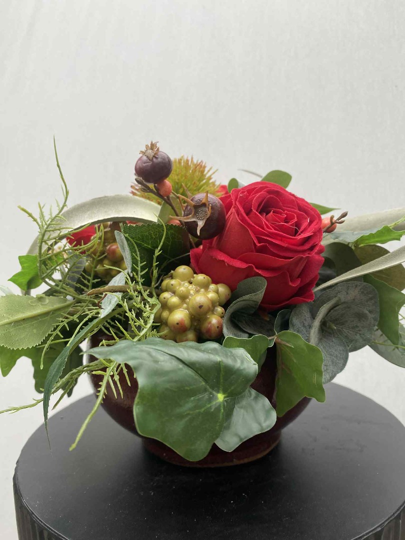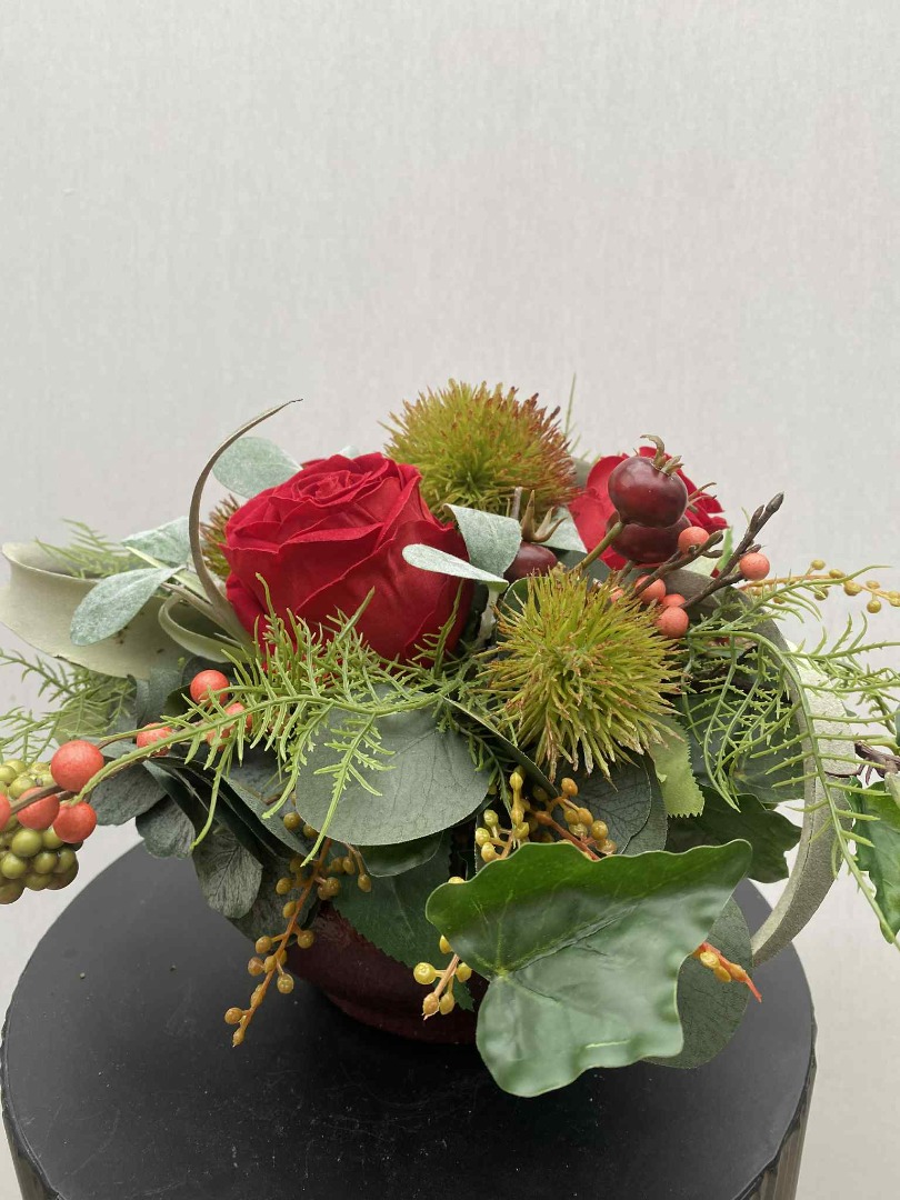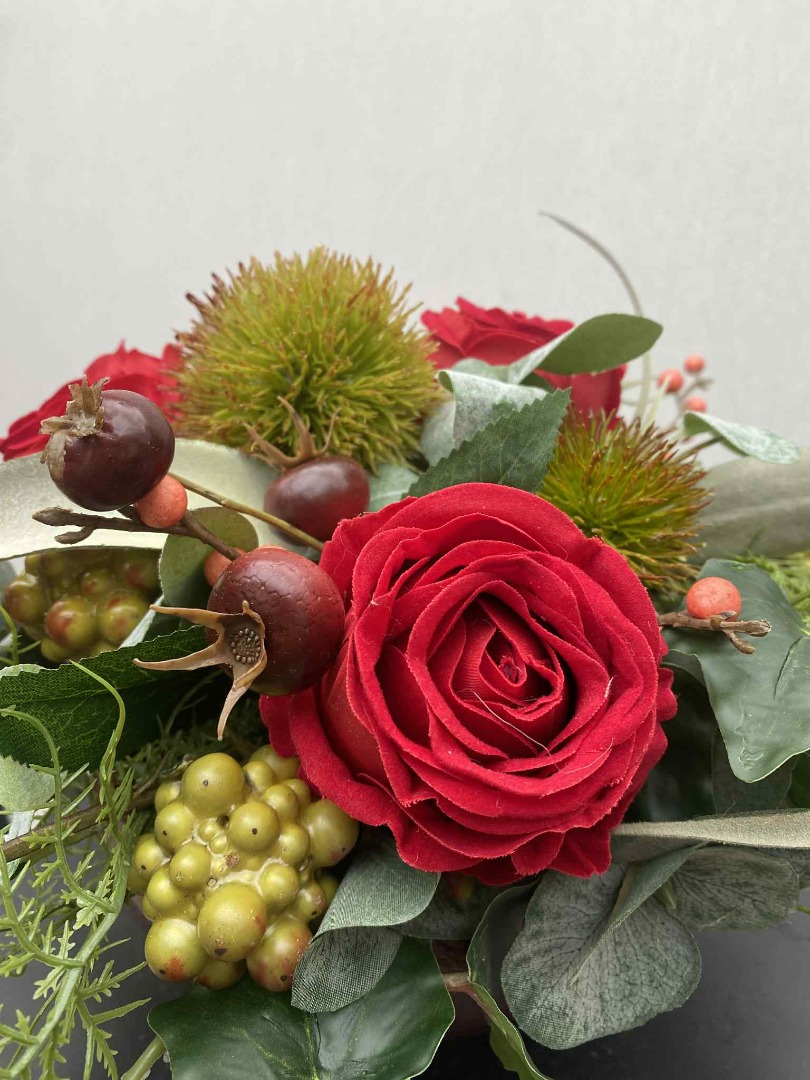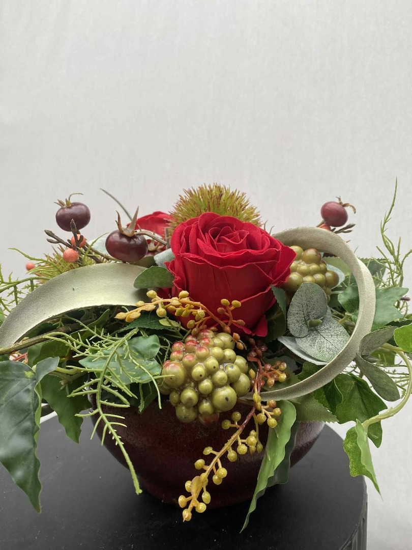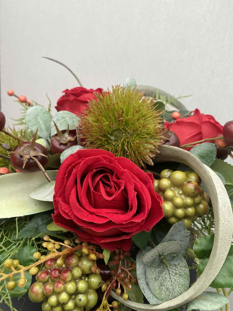 Dit fraaie Bloemstuk is volledig van zijde bloemen gemaakt. Onze bloemstukken worden in eigen atelier gemaakt. Iedere bloemstuk is handwerk.