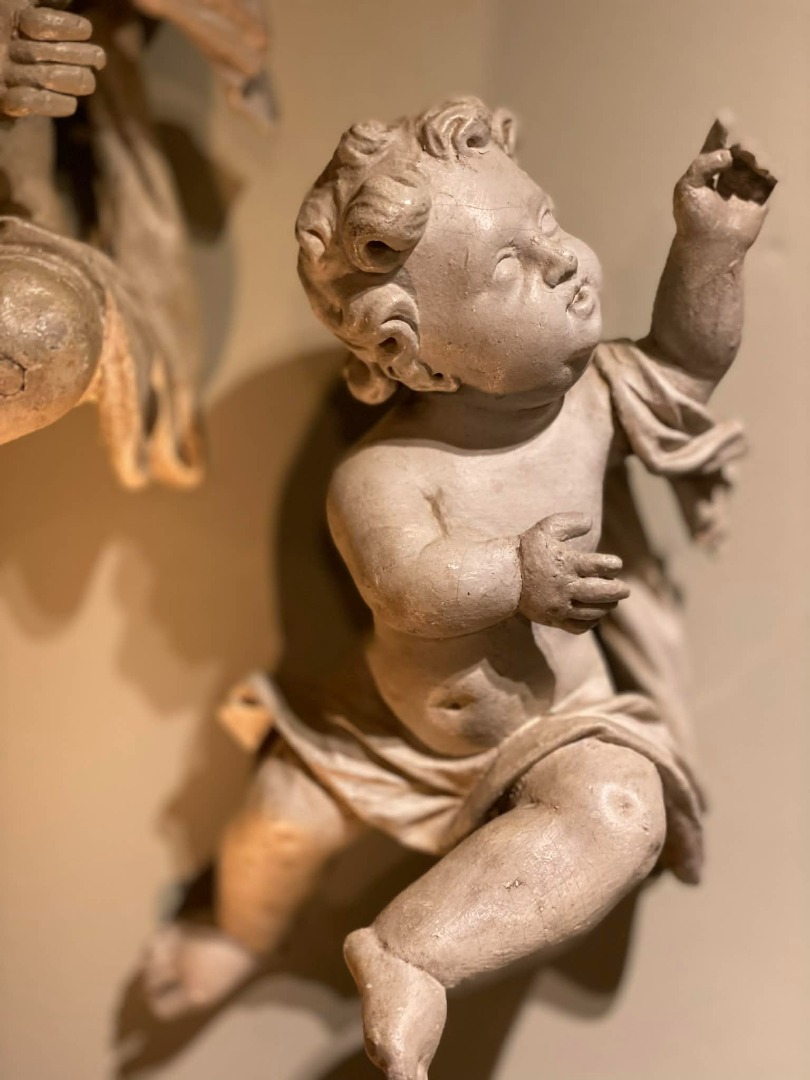 Deze zeldzame set van twee houtgestoken putti, uitgevoerd in hout en oorspronkelijk polychroom beschilderd, dateert uit de midden 18e eeuw, circa 1730–1750, en vormt een fraai voorbeeld van de overgang van de late barok naar de vroege rococo.