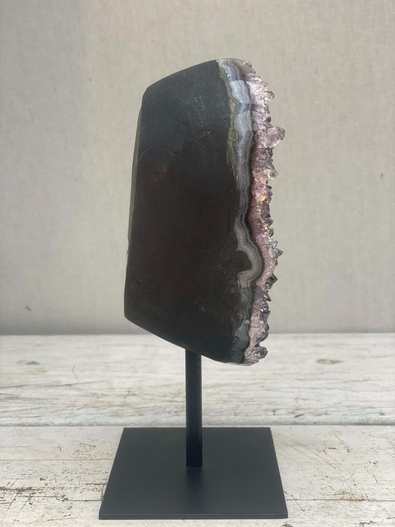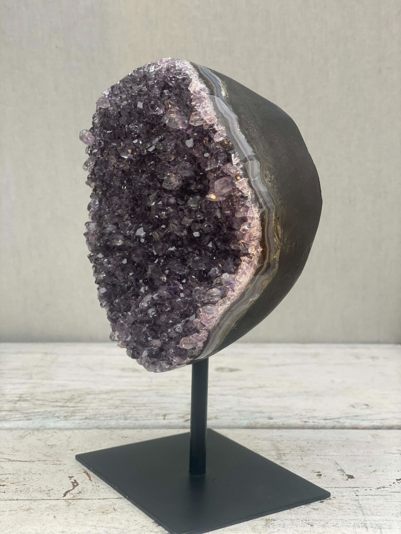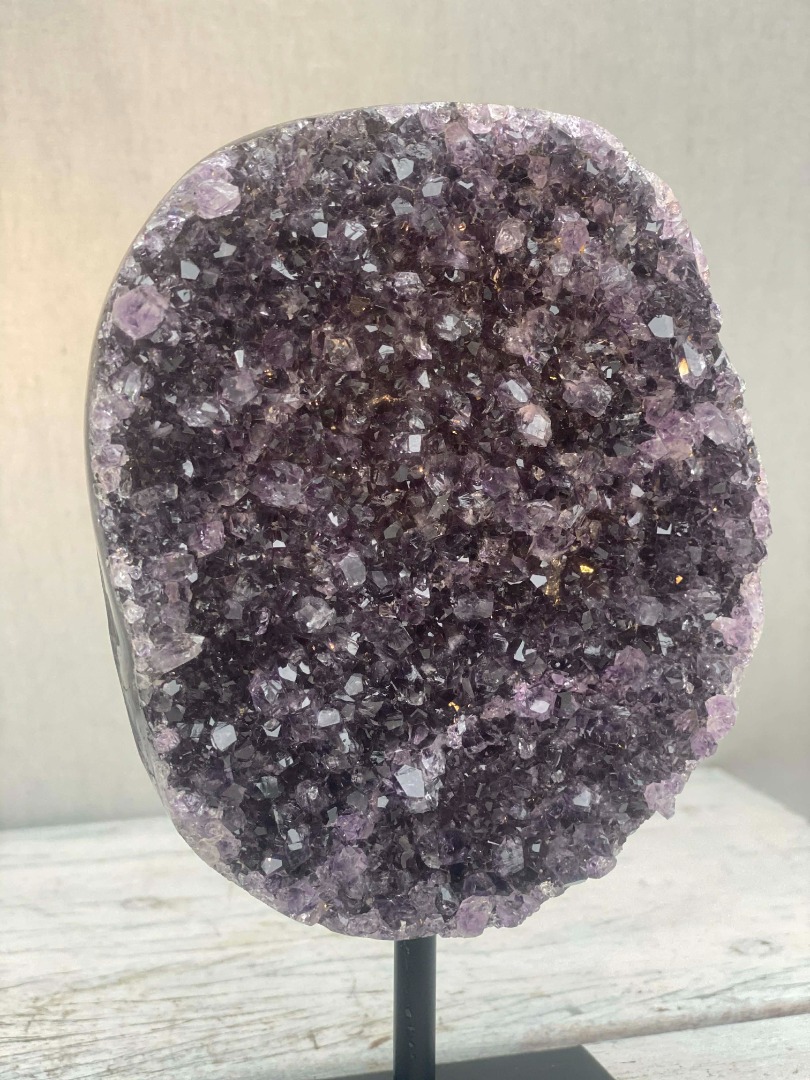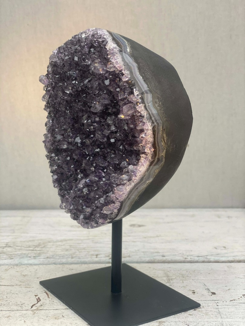 Of u een amethist nu vooral mooi vindt, of gelooft in de werking ervan, dit bijzondere natuurobject past in ieder interieur. De diepe paarse kleur en verfijnde kristalvorming maken de amethist tot een stijlvolle eyecatcher die moeiteloos aansluit bij zowel moderne als klassieke woonstijlen. Van minimalistisch tot warm en landelijk: de natuurlijke uitstraling voegt altijd karakter, rust en luxe toe aan de ruimte.