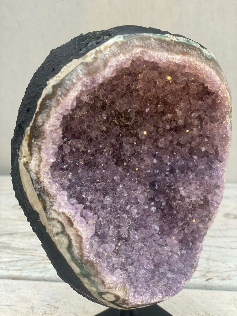 Of u een amethist nu vooral mooi vindt, of gelooft in de werking ervan, dit bijzondere natuurobject past in ieder interieur. De diepe paarse kleur en verfijnde kristalvorming maken de amethist tot een stijlvolle eyecatcher die moeiteloos aansluit bij zowel moderne als klassieke woonstijlen. Van minimalistisch tot warm en landelijk: de natuurlijke uitstraling voegt altijd karakter, rust en luxe toe aan de ruimte.