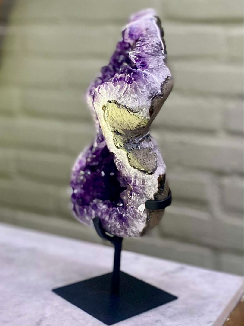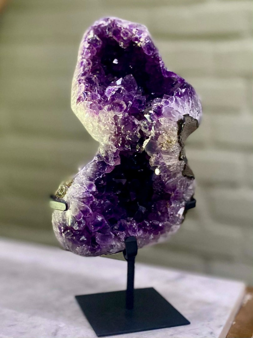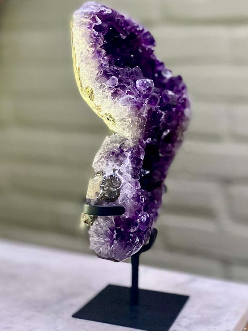 Of u een amethist nu vooral mooi vindt, of gelooft in de werking ervan, dit bijzondere natuurobject past in ieder interieur. De diepe paarse kleur en verfijnde kristalvorming maken de amethist tot een stijlvolle eyecatcher die moeiteloos aansluit bij zowel moderne als klassieke woonstijlen. Van minimalistisch tot warm en landelijk: de natuurlijke uitstraling voegt altijd karakter, rust en luxe toe aan de ruimte.